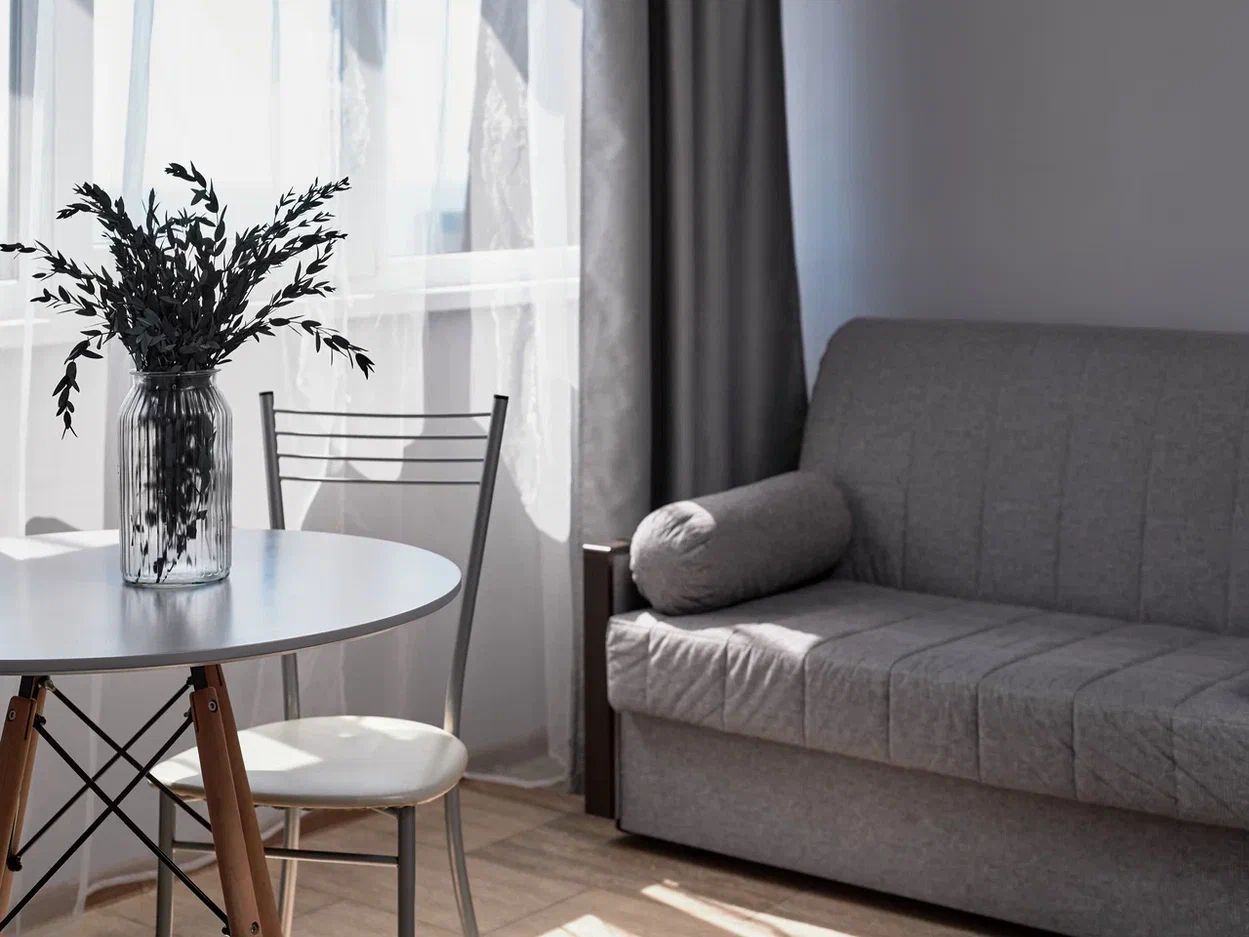 - Мебель: диван раскладной, зеркало, кровать двуспальная, стол, стулья